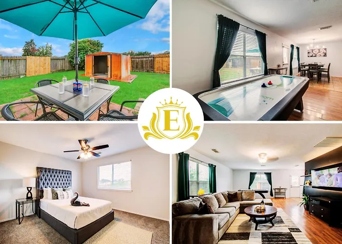 The nearest airport is George Bush Intercontinental - Houston and it is placed within 15 minutes' drive from Modern 4Br Retreat With Yard & Air Hockey Table Villa.